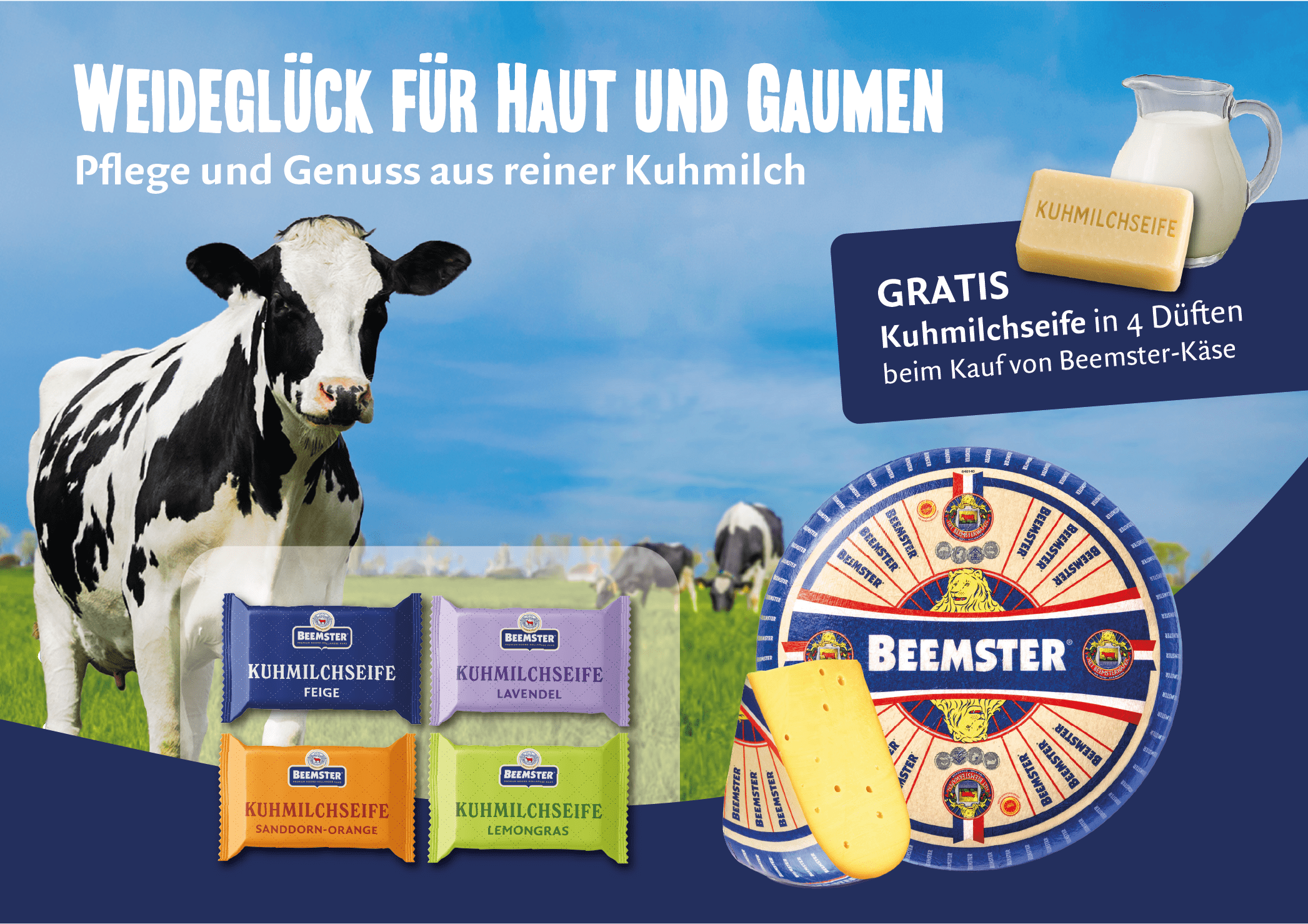 Westbeemster, 05.02.2026 // Beemster lädt ein – zum Genießen und Wohlfühlen! Von KW 07 bis 11 erhalten Kundinnen und Kunden beim Kauf von Beemster Premium Gouda gratis ein Stück Seife mit hochwertiger Kuhmilch.